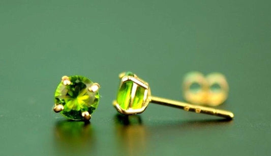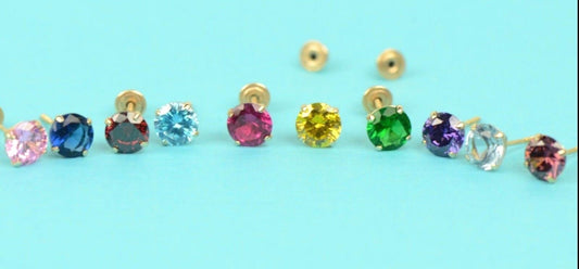 14K Solid Yellow Gold 4mm Round Birthstone Stud Earrings with screw back