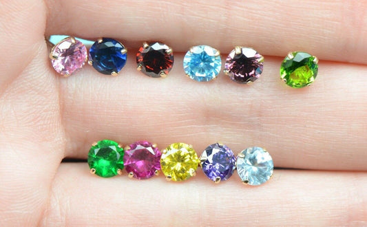 14K Solid Yellow Gold 5mm Round Birthstone Stud Earrings with screw back