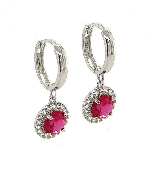 14k White Gold Halo Round Shaped pretty Birthstone Huggie Earrings for Women
