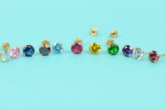 14K Solid Yellow Gold 3mm Round Birthstone Stud Earrings with screw back