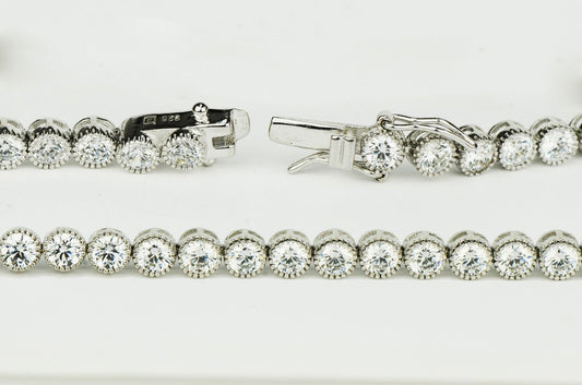 Sterling Silver CZ Tennis Bracelet AAA 4mm Round Brilliant Cubic Zirconia Gems