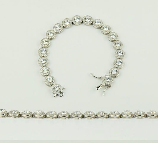 Sterling Silver CZ Tennis Bracelet AAA Halo Round Brilliant Cubic Zirconia Gems