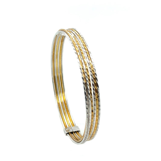 Set of Seven Diamond Cut Seminario Bangles Rhodium Finished Sterling Silver