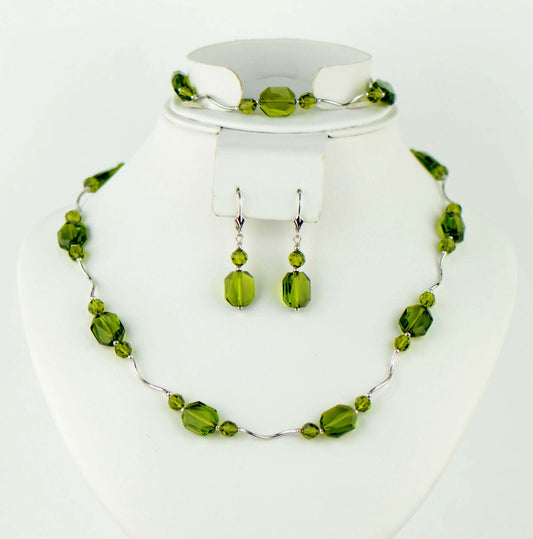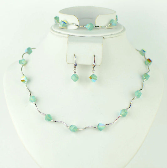 Sterling Silver Crystal Jewelry 3 PC Set Necklace Bracelet and earrings