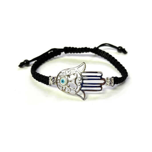 925 Sterling Silver Hamsa Bracelet 6" Adjustable to 11"
