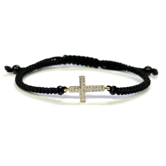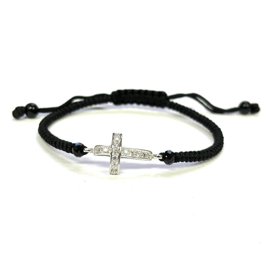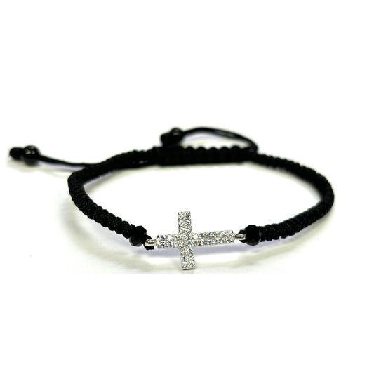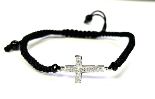 925 Sterling Silver String CZ Bracelet Cross 6" Adjustable to 11"