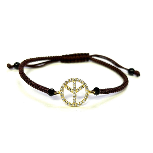 925 Sterling Silver String CZ Bracelet Peace Sign 6" Adjustable to 11"