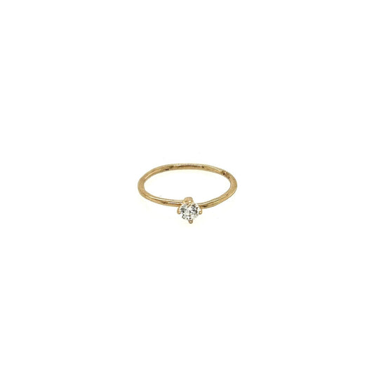 14K Solid Yellow Gold Bezel Nose Ring Hoop with 2mm CZ Stone