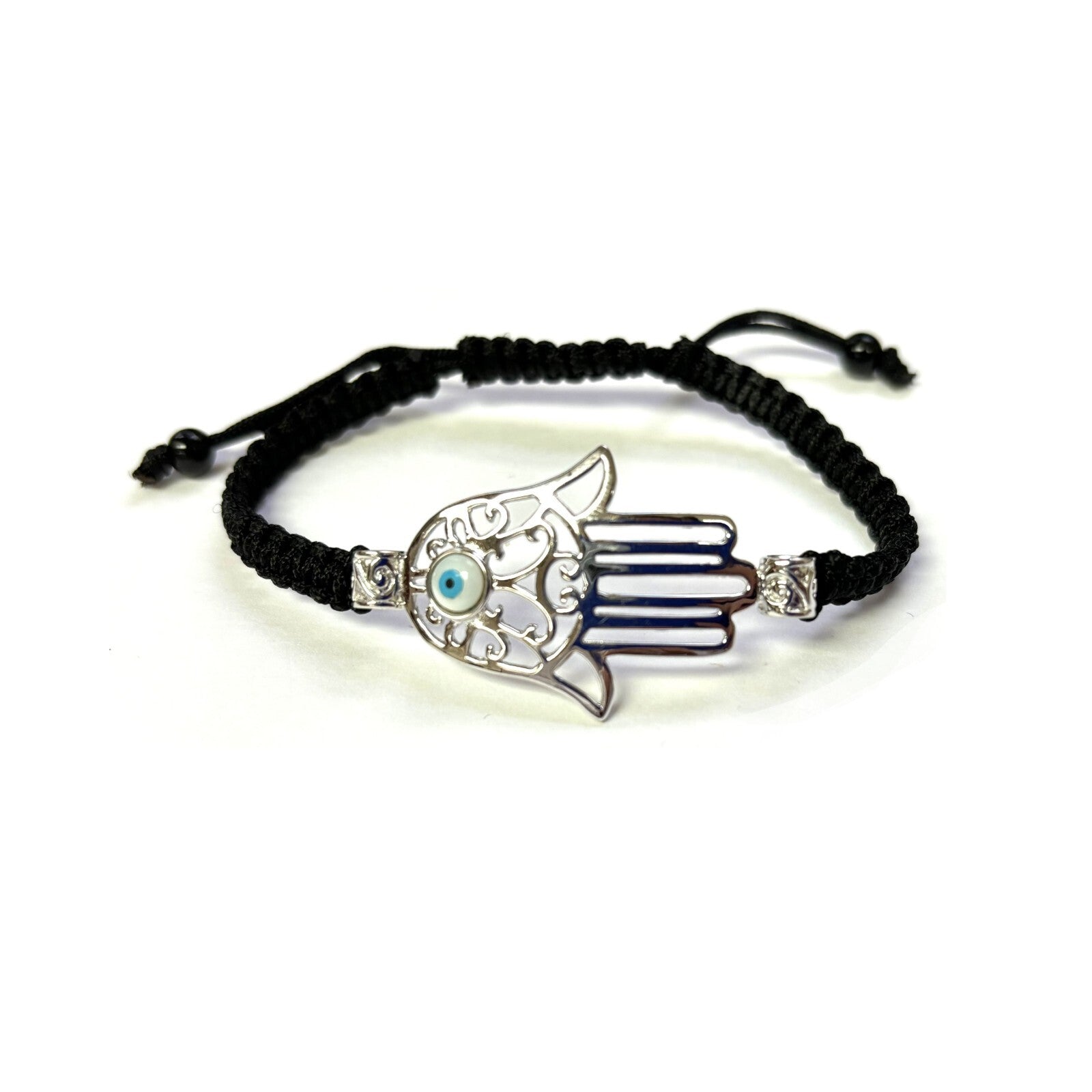 This Hamsa Bracelet is made of 925 Sterling Silver with Nylon Threat.