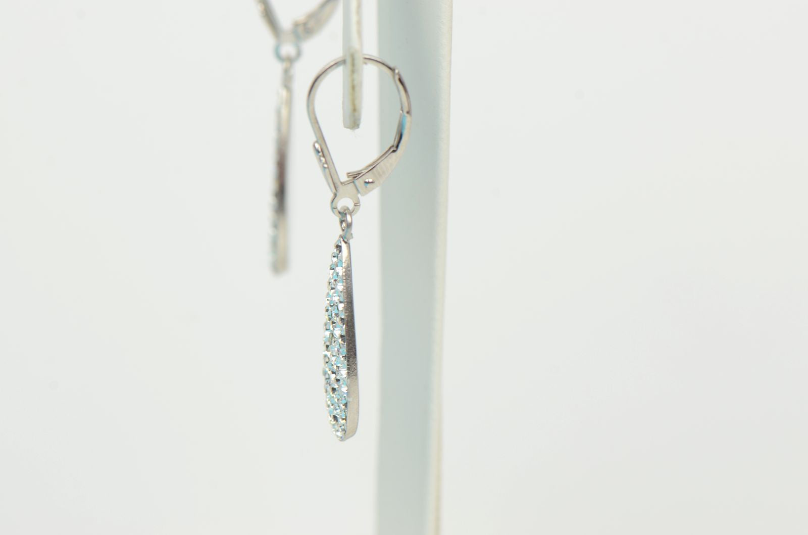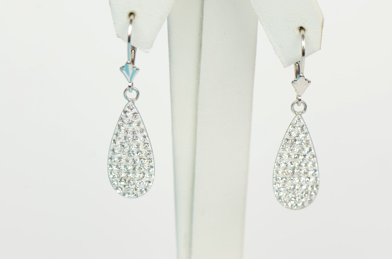 This is .925 Sterling Silver Drop Lever Back Dangle Earrings with Genuine Czech Crystals . The stone is sparkle like a diamonds . The length is 39mm and the drop size is 23x9mm . The pair weight about 2.0 gram .
