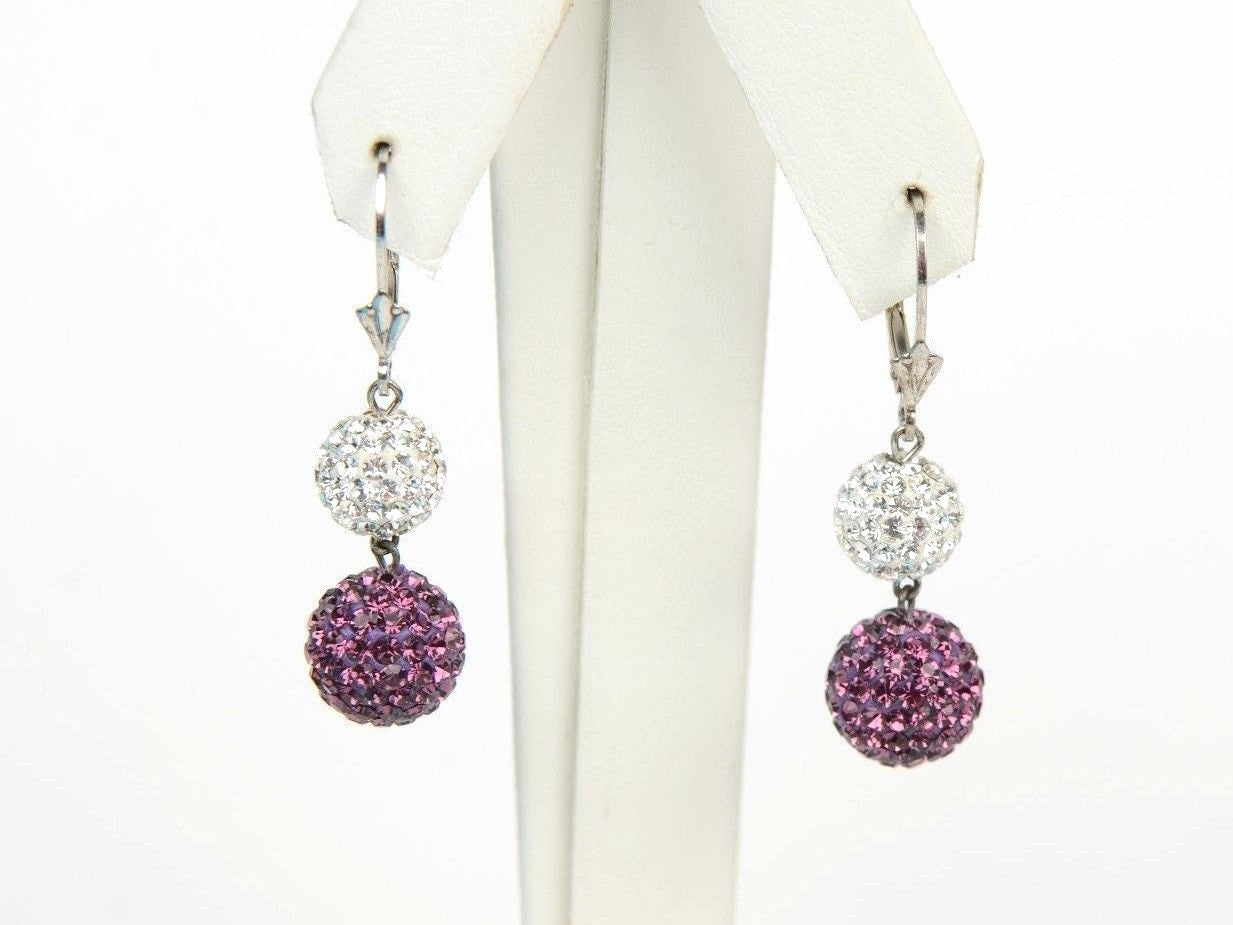 This is .925 Sterling Silver Lever Back Dangle Earrings with Genuine Czech Crystals . The stone is sparkle like a diamonds . The length is 38mm and ball diameter are 8mm and 10mm .