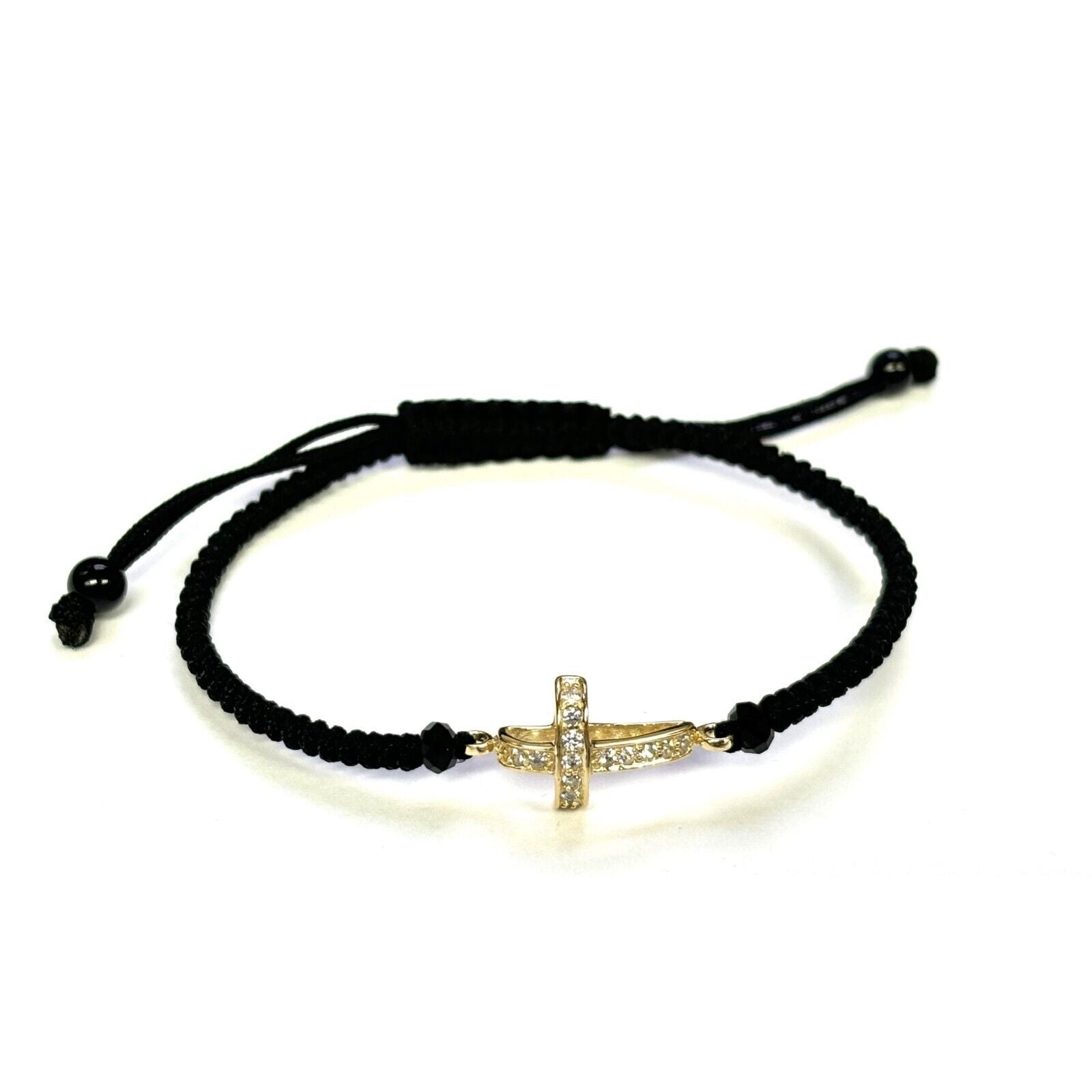 This CZ Bracelet Cross is made of 925 Sterling Silver with Nylon Threat.