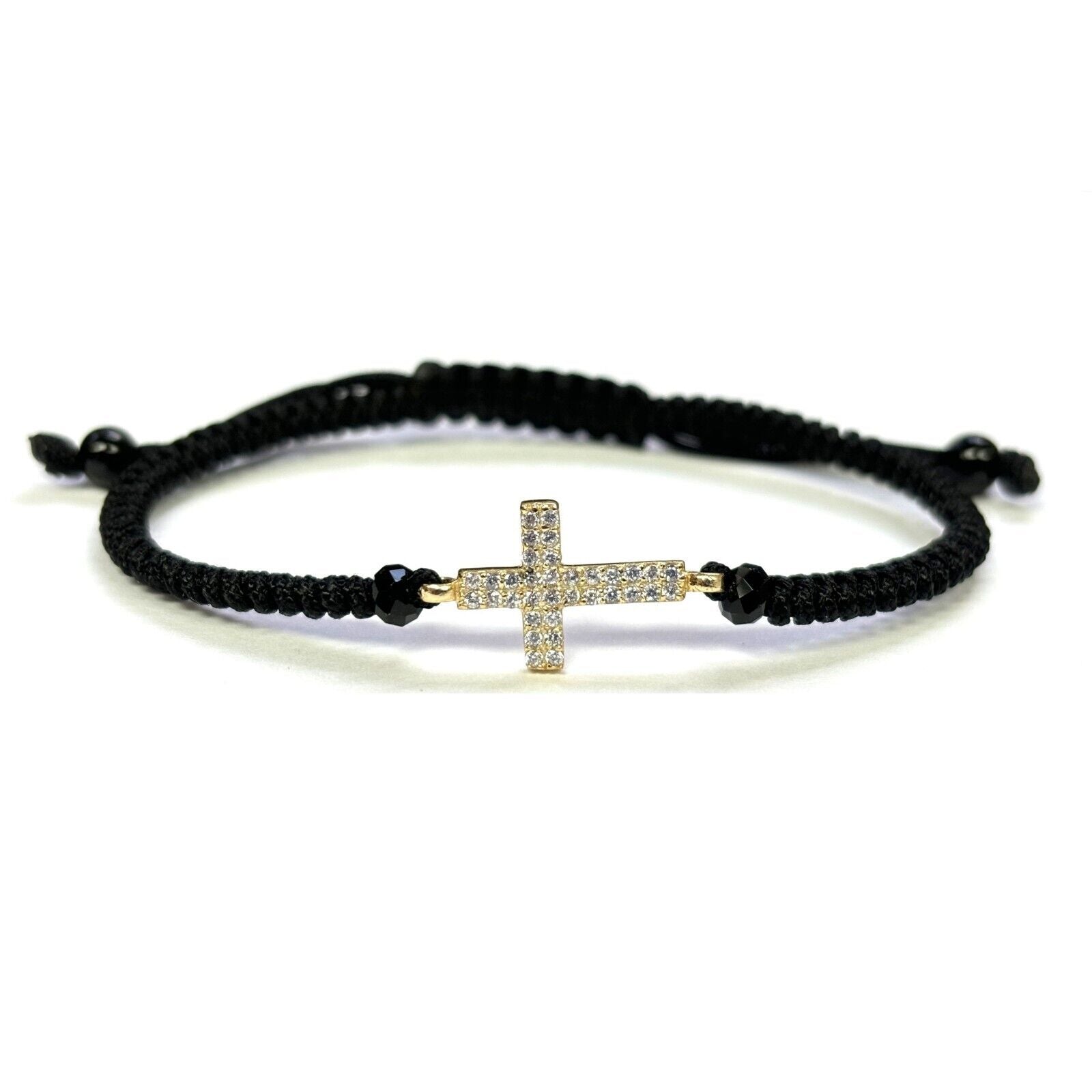 This CZ Bracelet Cross is made of 925 Sterling Silver with Nylon Threat.
