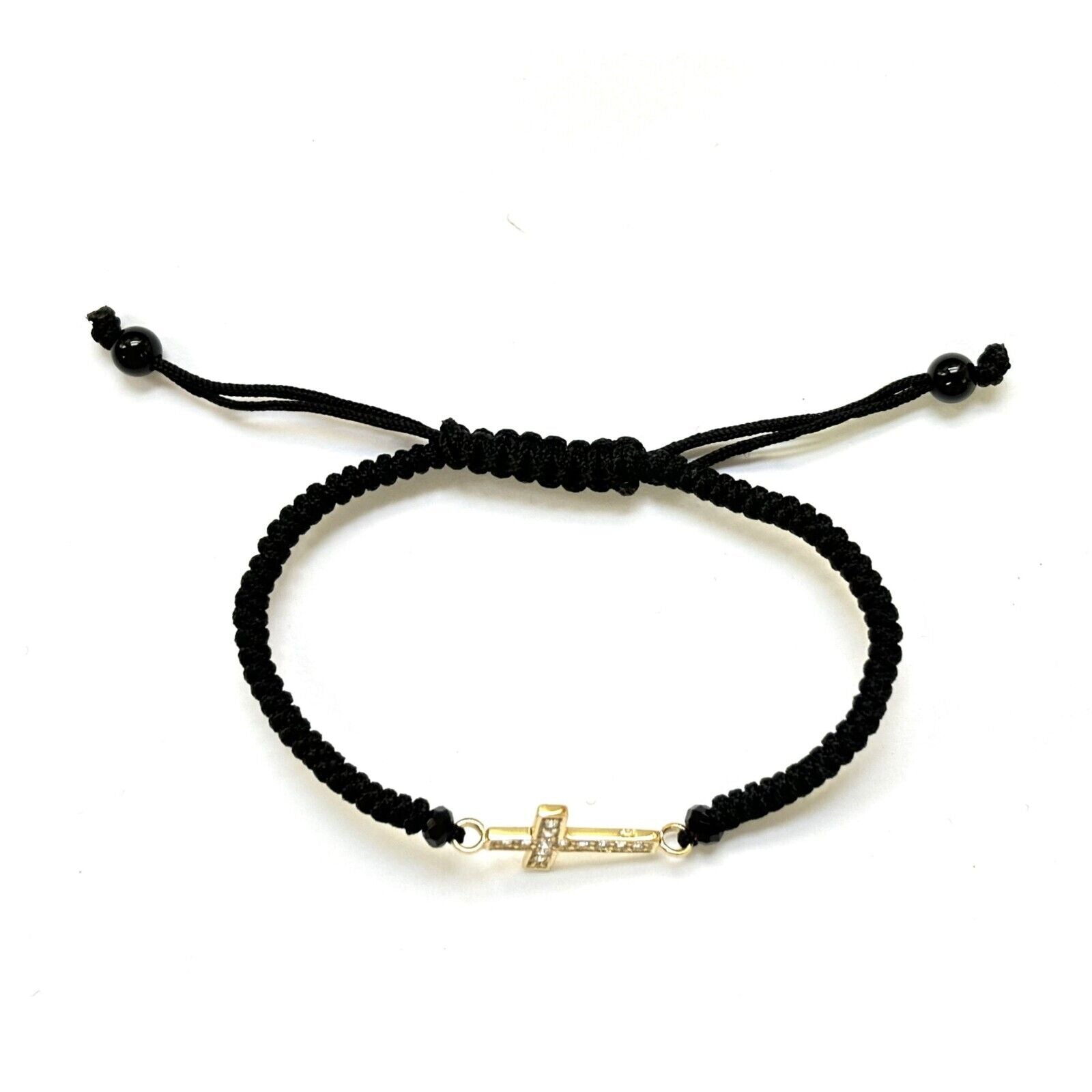 This CZ Bracelet Cross is made of 925 Sterling Silver with Nylon Threat.