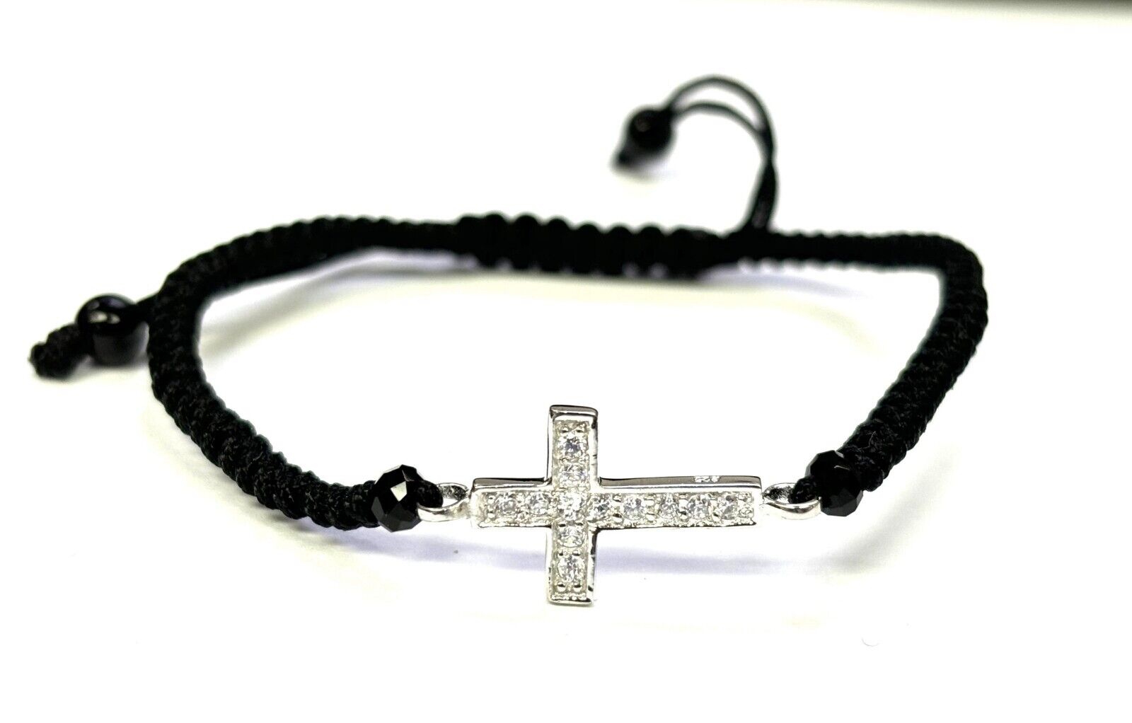 This CZ Bracelet Cross is made of 925 Sterling Silver with Nylon Threat.