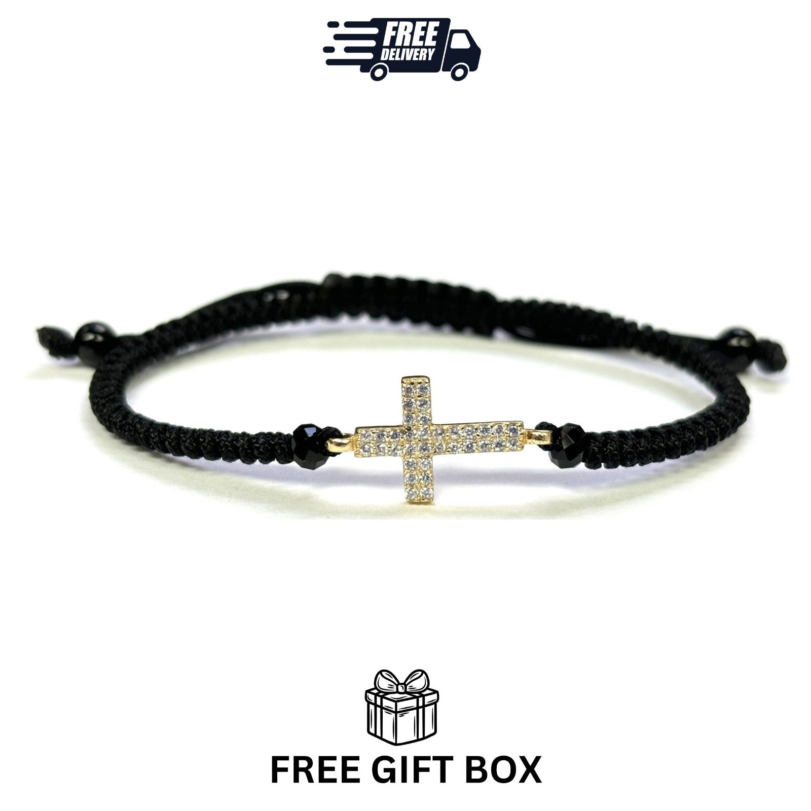 This CZ Bracelet Cross is made of 925 Sterling Silver with Nylon Threat.