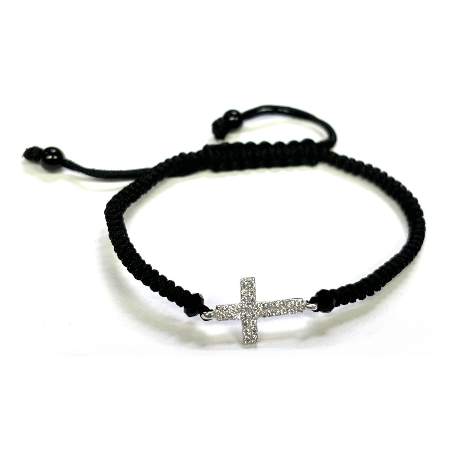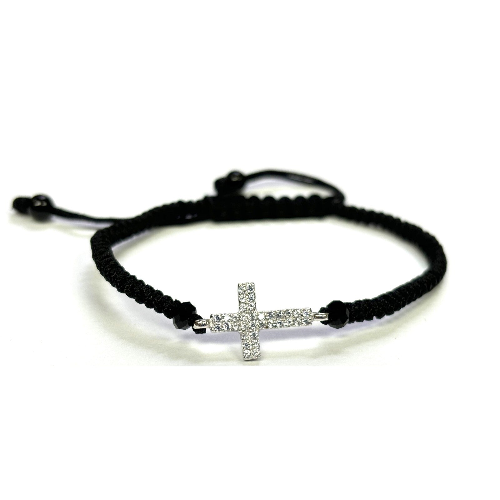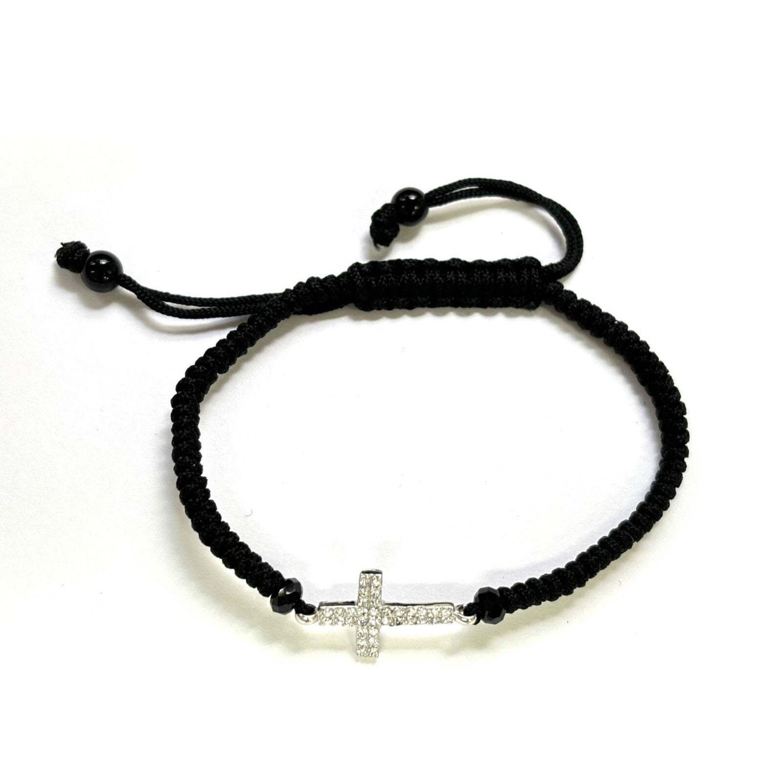 This CZ Bracelet Cross is made of 925 Sterling Silver with Nylon Threat.